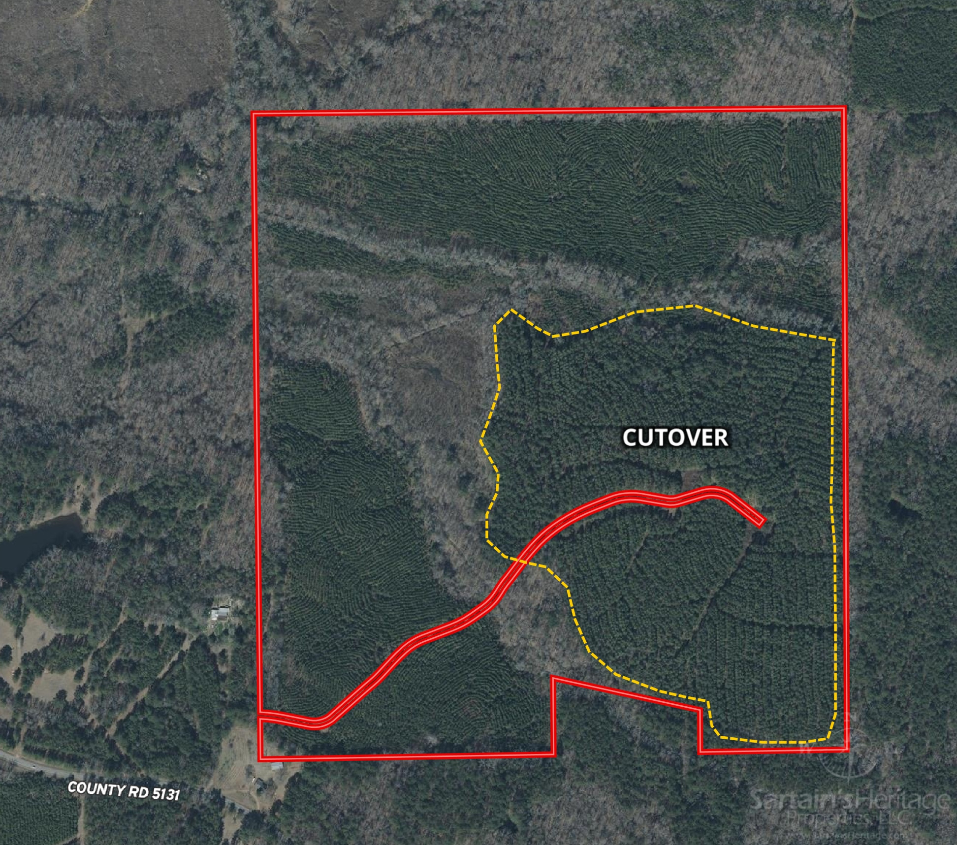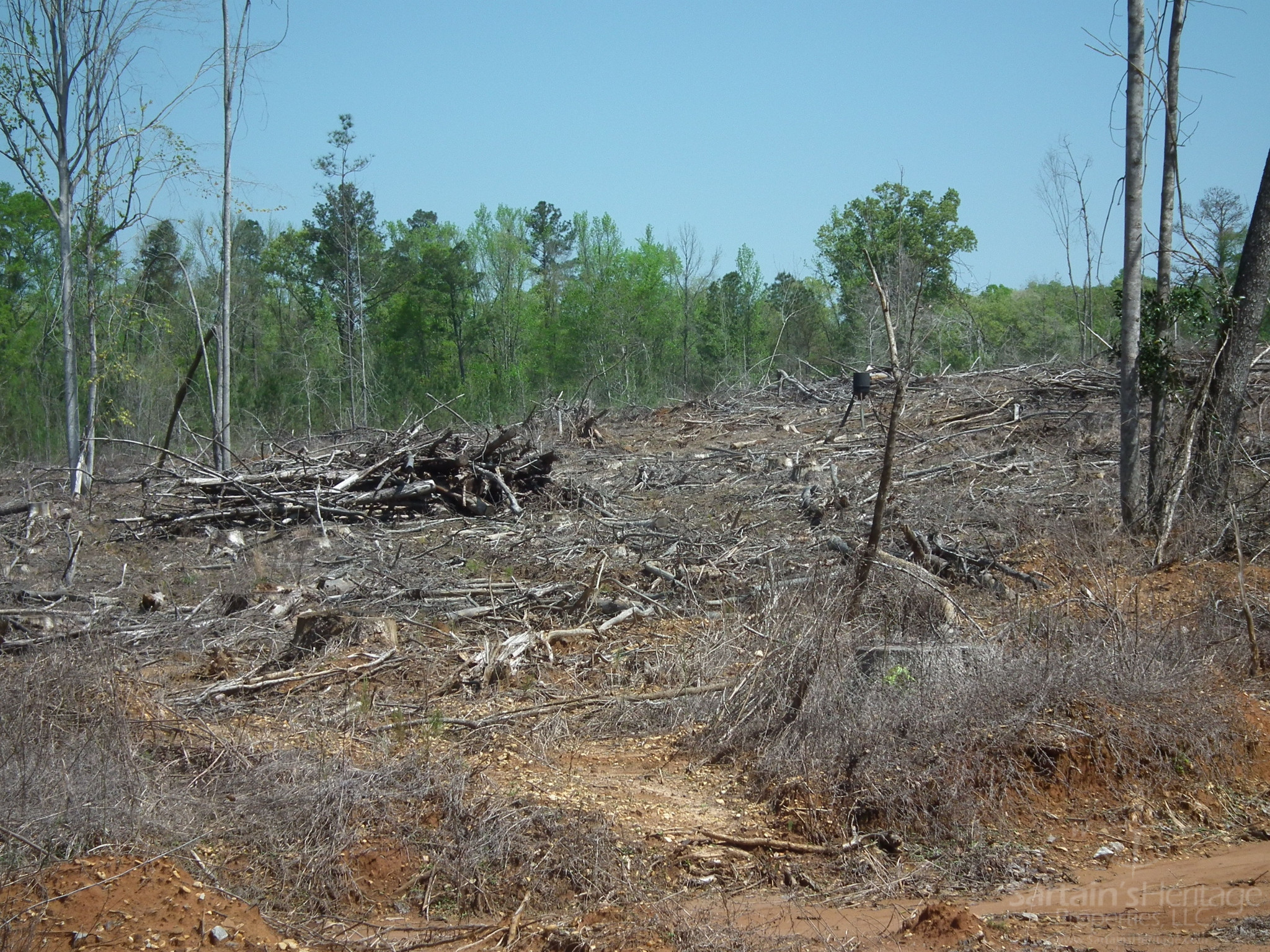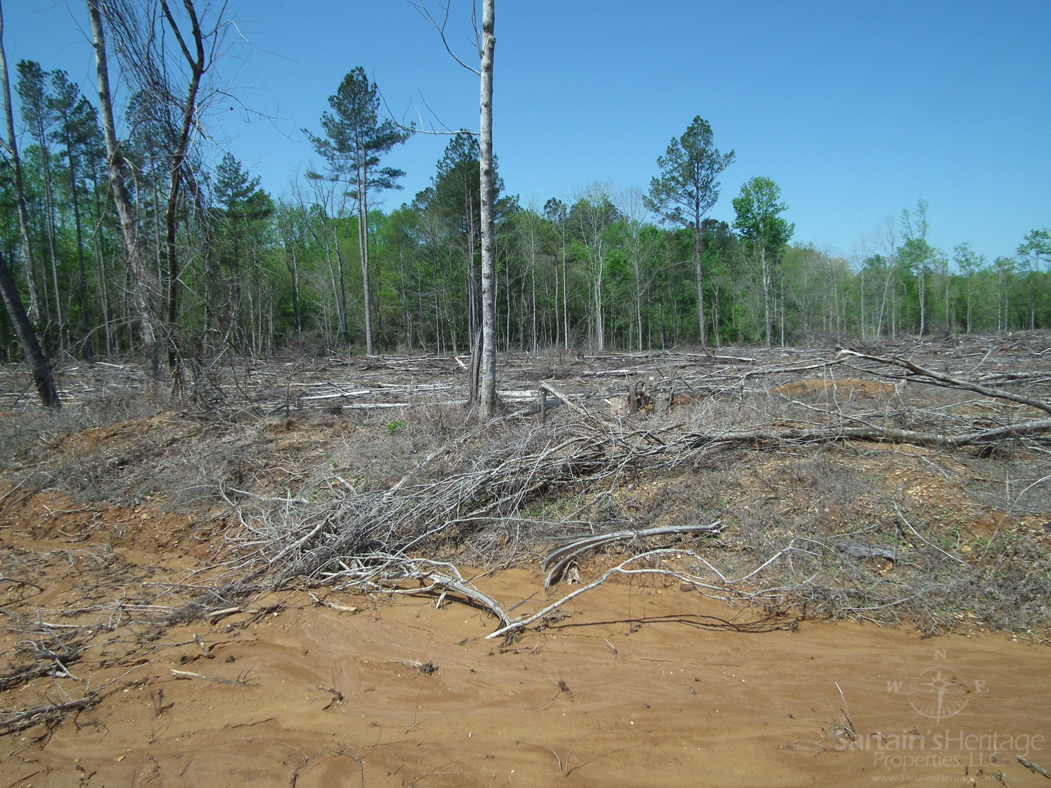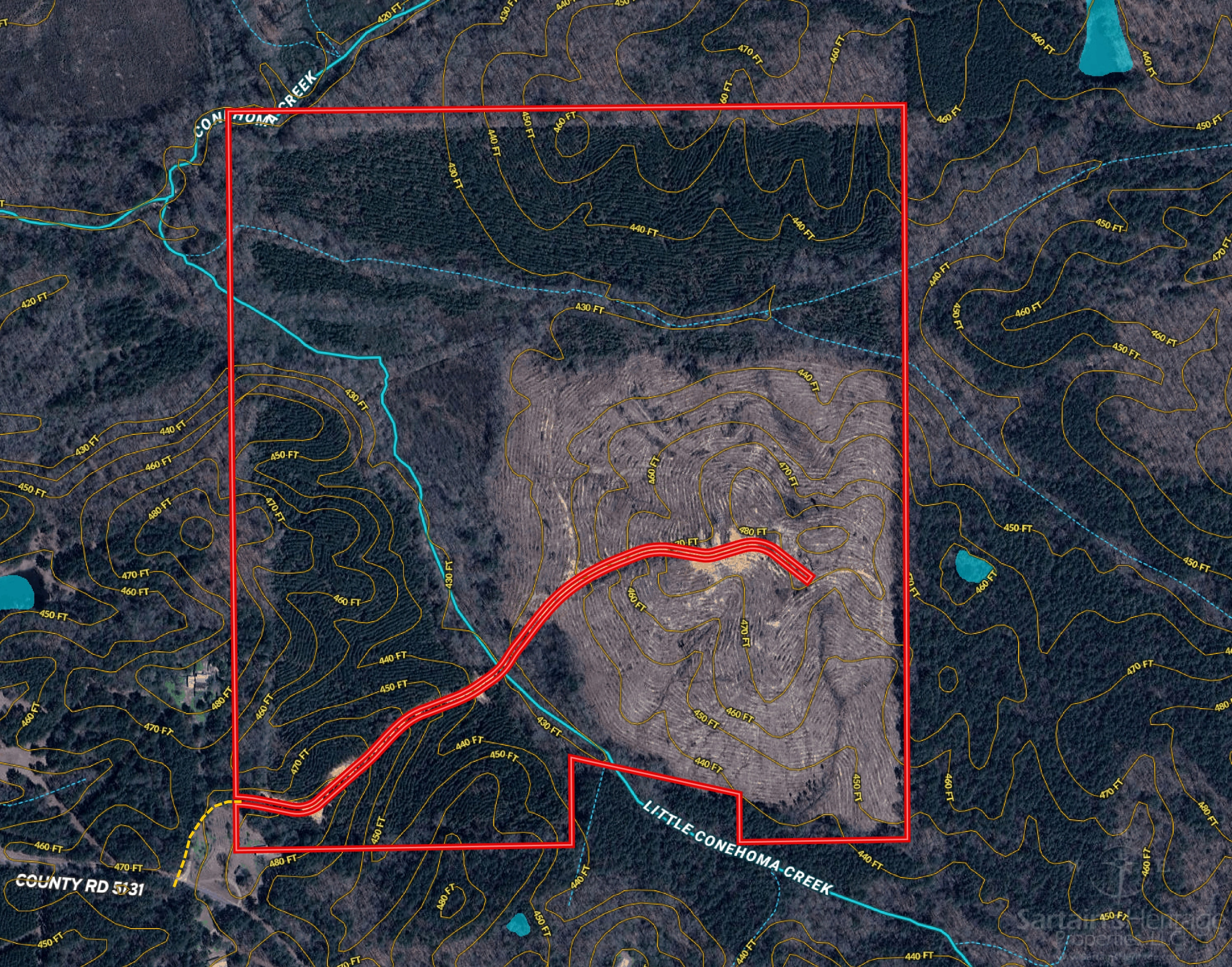 This diverse property features a mix of 77 acres of 9-year-old pine plantation, 57 acres of recent cutover, and 31 acres of hardwood Stream Side Management bottomland, providing a valuable wildlife travel corridor that runs east to west. The terrain varies from upland hills to fertile bottomlands along a tributary of Conehoma Creek, creating a rich ecosystem ideal for hunting and outdoor activities.