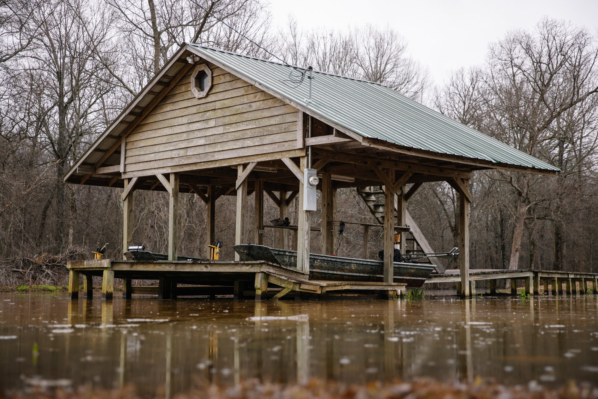 The main green tree unit is accessible from the boat house, at the lodge. The covered boat house has two boat slips, providing easy access to the GTR boat trails. The main unit is comprised of about 300 acres of timber and multiple clears in the woods. The two other units are easily accessed by ATV. Each being independently controlled. Having separate GTR units is one of the strengths of Bear Creek. This allows the ownership the ability to rotationally flood the property, ensuring sustainability in the timber health.